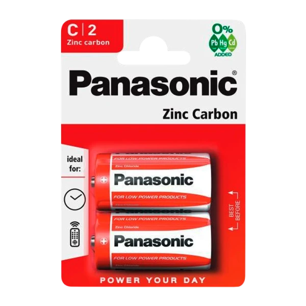 Батарейка Panasonic R14 C BL2 Zinc Carbon 1.5V (2/24/120)