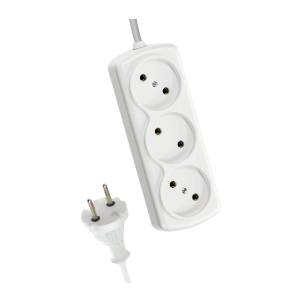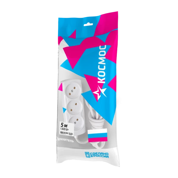 Удлинитель 1300 Вт 5м на 3 гнезда – базовая модель для не слишком мощной домашней периферии - настольные лампы, зарядные устройства и др. Вставки на корпусе из негорючего полипропилена, кабель ПВС 2х0,75мм (без заземления). Контактная группа из латуни не деформируется со временем.