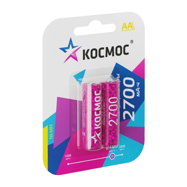 Ni-Mh (никель-металлогидридные) аккумуляторы Космос – заменяют обычные батарейки типоразмера АА также называют «пальчиковые» (на приборах-потребителях может обозначаться как LR6, R6, UM3). Быстро окупятся - можно заряжать сотни раз, экономя на обычных батарейках. В упаковке 2 шт – достаточно для большинства приборов. Емкость 2700 мАч – для мощных устройств. Важно – перед первым использованием аккумуляторы нужно зарядить.
