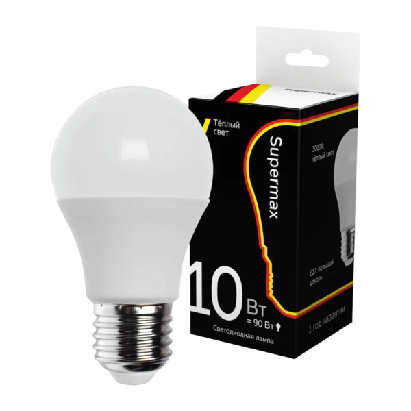 Лампа светодиодная Supermax A60 E27 10W 3000К 230V груша (1/10/80)