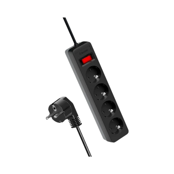 Сетевой фильтр Космос 4р.С/З 10A 1.5м ПВС 3x0.75мм² с выкл. черный (1/20)