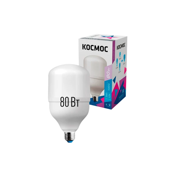 Светодиодная лампа Космос HWLED 80W 220V E27 6500K переходник в комплекте на Е40 является аналогом лампы накаливания 500Вт.