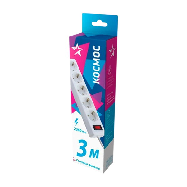 Удлинитель с сетевым фильтром КОСМОС FKsm3m-5g(W) – это надежное решение для подключения нескольких устройств одновременно. Длина кабеля составляет 5 метров, что позволяет удобно размещать технику на расстоянии от розетки. Сетевой фильтр Космос оборудован 5 гнездами, что делает его идеальным для использования в офисах и домашних условиях. Одной из ключевых особенностей данного удлинителя является наличие защиты от перенапряжений.