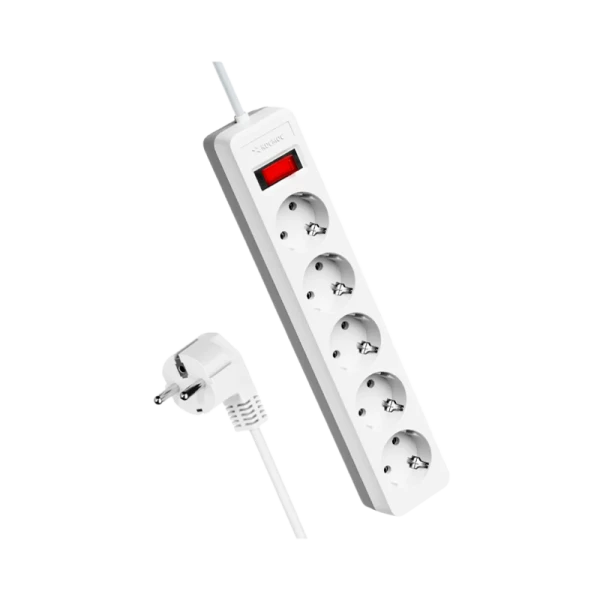 Сетевой фильтр Космос 5р.С/З 10A 5.0м ПВС 3x0.75мм² белый (1/20)
