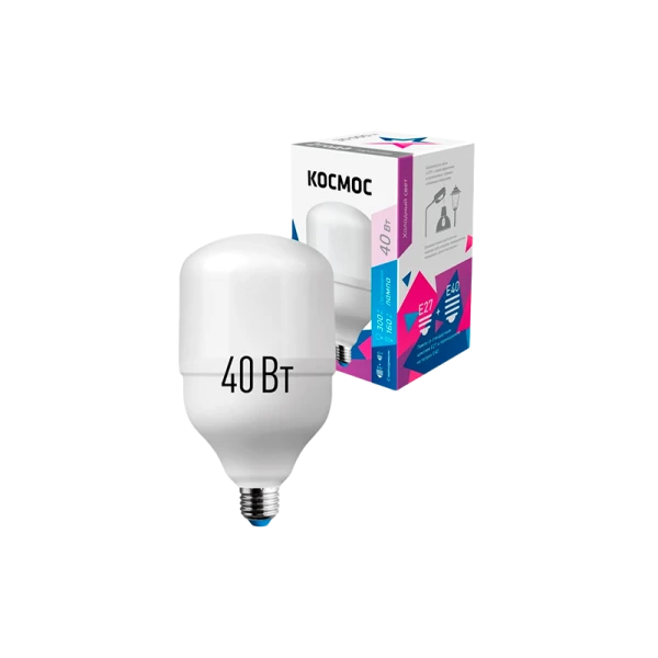 Светодиодная высокомощная лампа КОСМОС LED 40Вт E27 6500К 417273 LksmHWLED40WE2765 является аналогом лампы накаливания 300Вт. Рабочая температура - 20 + 50.