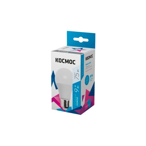Лампа светодиодная Космос 9Вт E27 4500K 720Лм 220В. Светодиодная лампа Космос 9 Вт является аналогом лампы накаливания 75 Вт - для средней комнаты понадобится 3 таких лампочки. Стабильный свет без падения яркости в течение всего срока службы (30 000 часов) - за счет использования светодиодов известных производителей. Цвет свечения лампы - 4500 К нейтральный белый, идеально подойдет для кухни, коридора, и других зон, где требуется нейтральный свет.