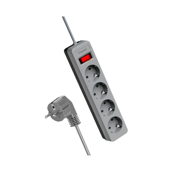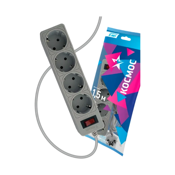 Сетевой фильтр Космос 4р.С/З 10A 1.5м ПВС 3x0.75мм² с выкл. серый (1/20)