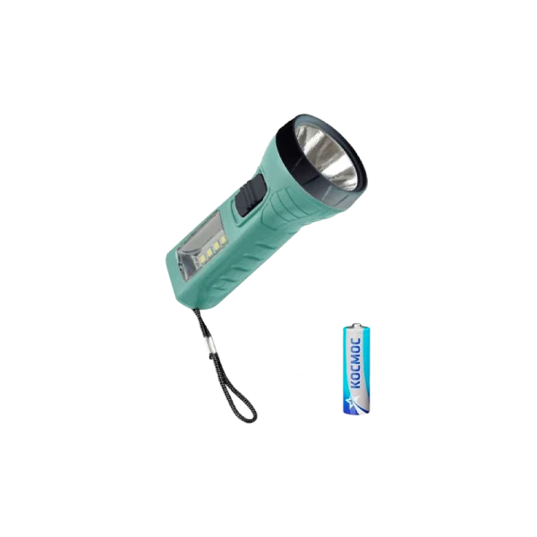 Фонарь ручной Космос 123B 1WLED+4SMDLED от батареек 1хАА IP42 2 режима зелёный/черный (1/12/96)