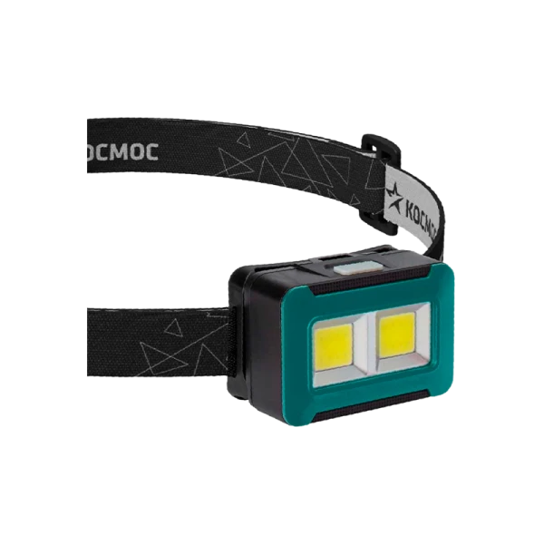 Фонарь налобный Космос 519B 4WCOBLED от батареек 3хАА IP44 3 режима зеленый/черный.