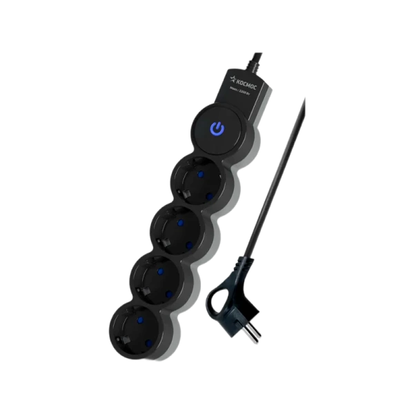 Удлинитель Космос 4р.С/З 10A 5.0м с выкл. ПВС 3х0.75мм² IP20 черный (1/20)