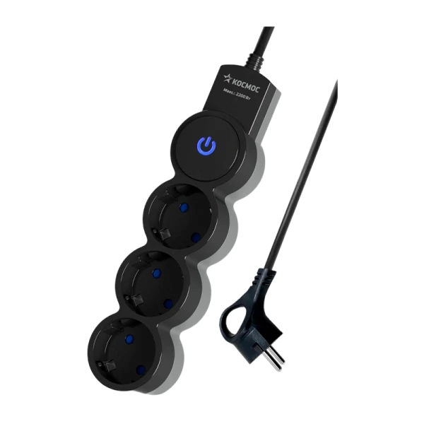 Удлинитель Космос 3р.С/З 10A 5.0м с выкл. ПВС 3х0.75мм² IP20 черный (1/30)