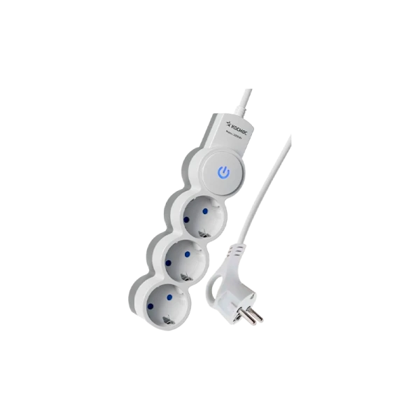 Бытовой удлинитель Космос белого цвета с кнопкой включения,