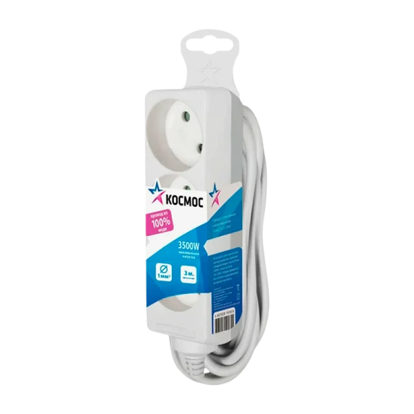 Удлинитель Космос 3р.Б/З 16A 3.0м ПВС 2x1мм² белый (1/20)