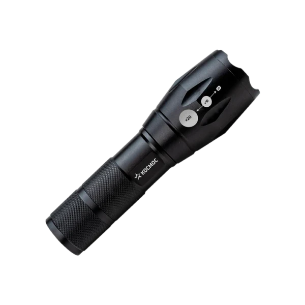 Фонарь КОСМОС Premium, авиационный алюминий, 5Вт Q5 LED, питание 1х3.7V 18650 Li-on. KosAL_5W - это уникальный ручной фонарь оснащен светодиодом Q5 5W высокого класса (350 лм), 20-кратной оптикой, позволяющей менять ширину луча и обеспечивать луч более 200 метров. Ударопрочный корпус из авиационного алюминия. Возможность работы от дополнительных сменных Li-ion аккумуляторов 18650 3,7V для максимально длительной работы.