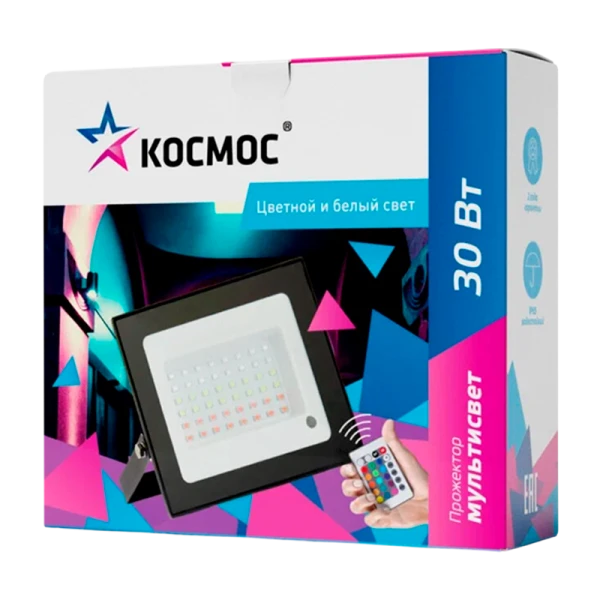 Прожектор светодиодный Космос 30W 230V IP65 RGB с пультом черный (1/20)