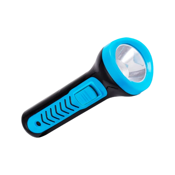 Стандартный бытовой фонарик с двумя режимами света.