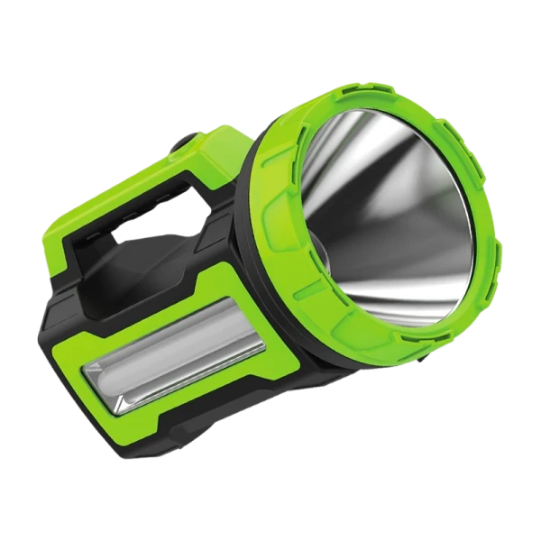 Ручной фонарь 2-в-1 со встроенным светильником на 180 градусов. Рекордная дальность луча – 620 метров, дополнительный вход для шнура автомобильной зарядки. Оба источника света можно регулировать. Функция Power bank – от фонаря можно подзарядить телефон. Совмещает луч фонаря (светит как фара автомобиля, направленный свет с ярким пятном засветки в центре) и широкий свет (освещает широкое пространство с одной стороны, удобен для работы вблизи). Длина луча – 620 м, время беспрерывной работы – 3-10 ч. Площадь освещения светильника - 29 кв.м, время беспрерывной работы – 6,5-15 ч. Надежный свинцово-кислотный аккумулятор 4В 6000 мАч, подзарядка от сети. Упакован в коробку с подробной информацией о модели и схемой фонаря.