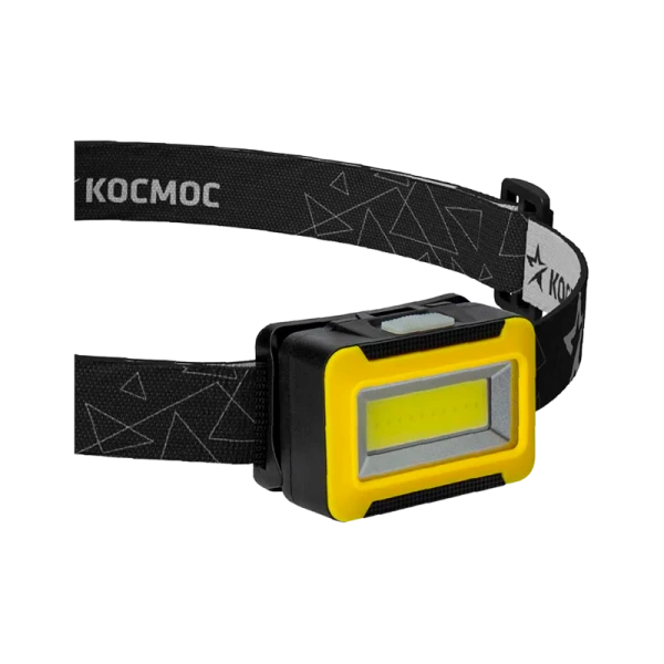 Фонарь налобный Космос 518B 3WCOBLED от батареек 3хААА IP44 3 режима желтый черный (1/30/240)