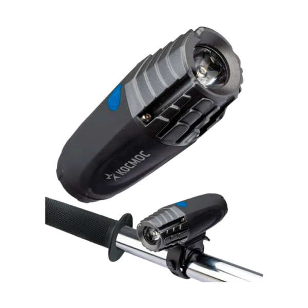 Велосипедный фонарь КОСМОС 1Вт LED с коллиматорной линзой, светит в любую погоду, защищен от дождя. Быстросъемное крепление отсоединяется в один клик, превращая фару в ручной фонарь.