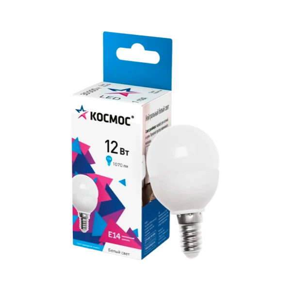 Лампа светодиодная Космос GL45 E14 12W 4500К 174-265V матовая.