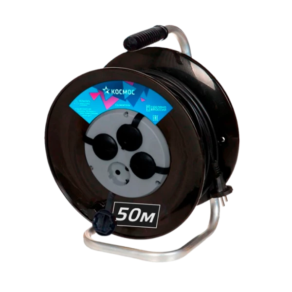 Удлинитель Космос 4р.С/З 16A 50.0м ПВС 3x1.5мм² IP20 на катушке черный (1)
