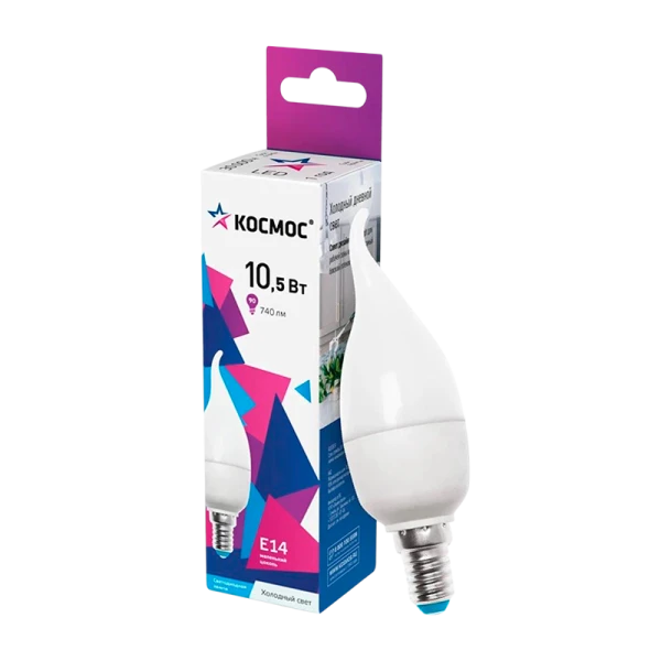 Лампа светодиодная Космос CW E14 10.5W 6500К 174-265V свеча на ветру матовая (1/10/80)