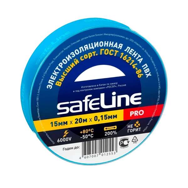 Изолента Safeline ПВХ 15мм*20м цвет синий;