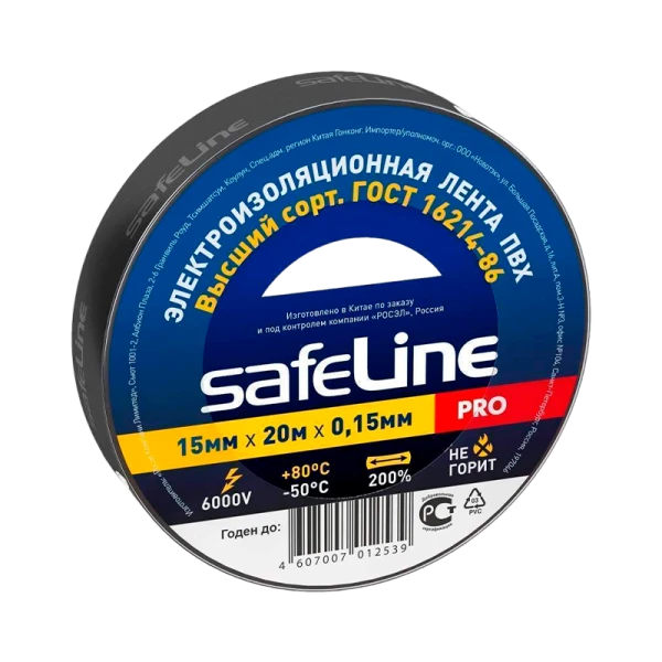 Изолента Safeline 15мм*20м ПВХ черный (10/200)