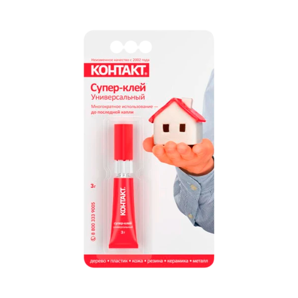 Супер-клей предназначен для быстрого склеивания распространенных в быту материалов.