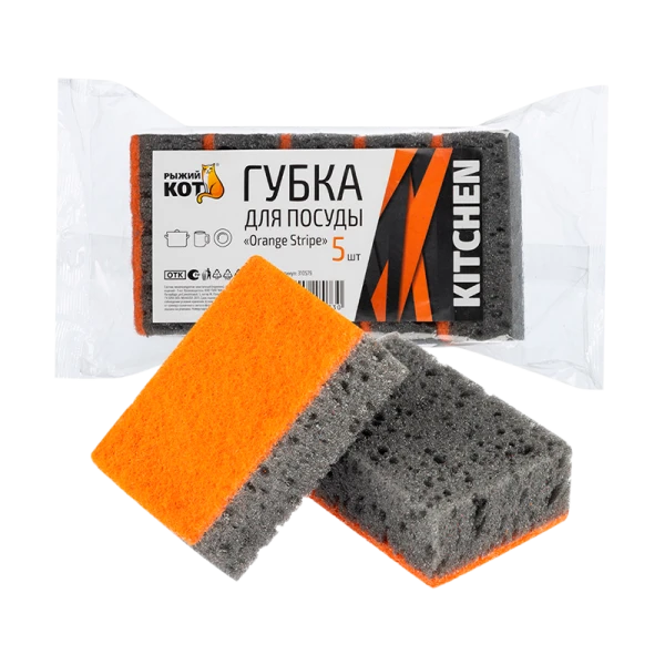 Губка для посуды Рыжий кот "Orange Stripe" 98х67х35мм 5шт. оранжевый (1/40)
