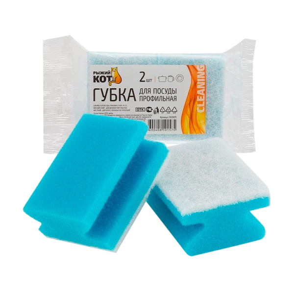 Губки для мытья посуды Рыжий кот Профильная - это незаменимый помощник в кухне. Они изготовлены из качественного материала, который не царапает поверхности и не оставляет разводов.