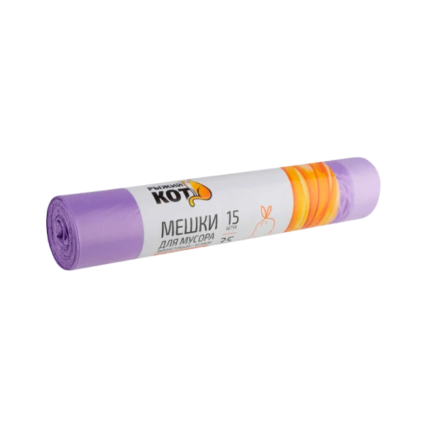 Мешки для мусора Рыжий кот 35л 18мкм ПНД 15шт. с завязками фиолетовый (1/30)