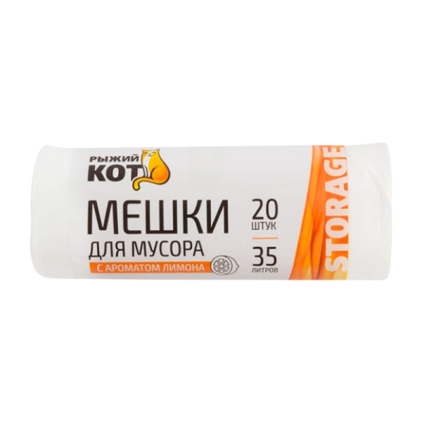 Мешки для мусора Рыжий кот 35л 10мкм ПНД 20шт. с ароматом лимона белый (1/50)