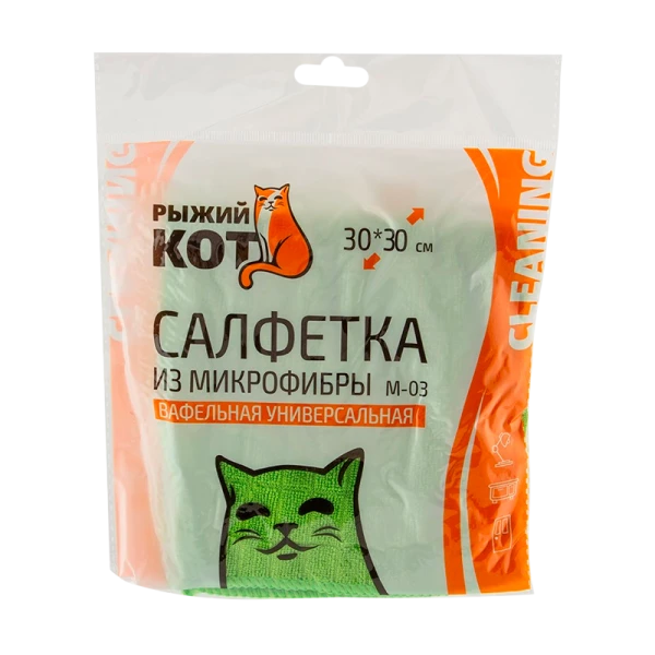 Уборочная салфетка вафельная из микрофибры Рыжий кот M-03;