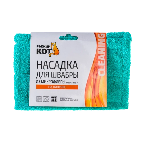 Насадка для швабры из микрофибры Рыжий кот MopM3-Eco-H предназначена для сухой и влажной уборки; Насадка плотно крепится на швабру и обеспечивает комфортную уборку; Материал насадки - микрофибра, хорошо впитывает влагу и быстро высыхает;