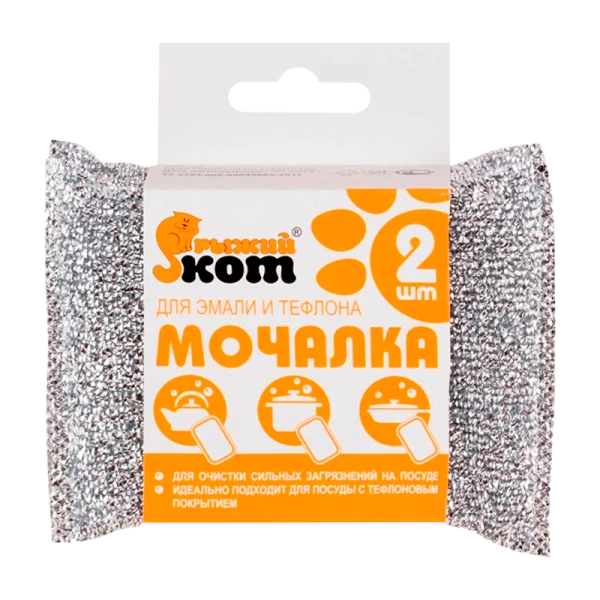 Мочалка для эмали и тефлона Рыжий кот 110мм x 80мм 2шт. серебристый (1/100)