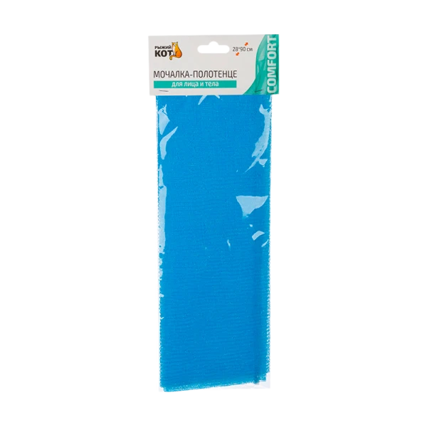 Мочалка для лица и тела Рыжий кот 90см x 28см нейлон синий (1/30/600)