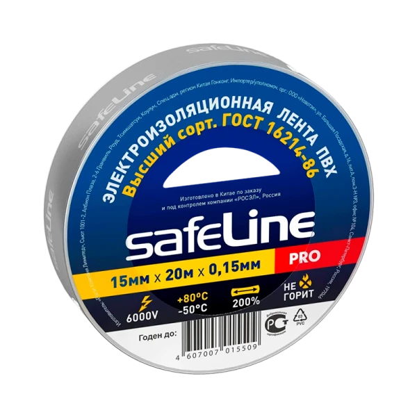Изолента Safeline 15мм*20м ПВХ серый стальной (10/200)
