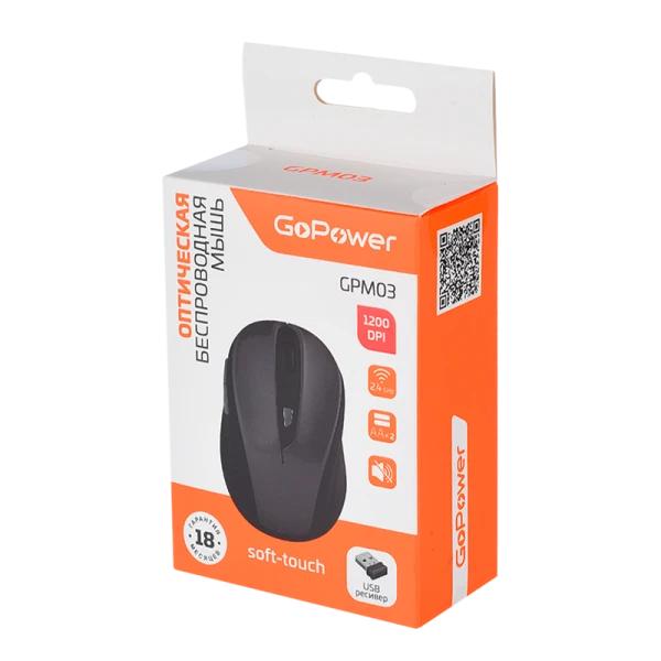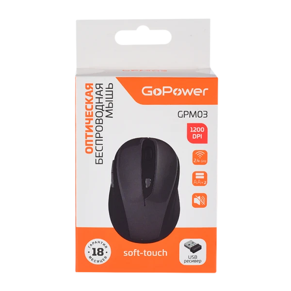 Мышь беспроводная GoPower GPM03 классическая USB бесшумная Soft-Touch черный (1/100)
