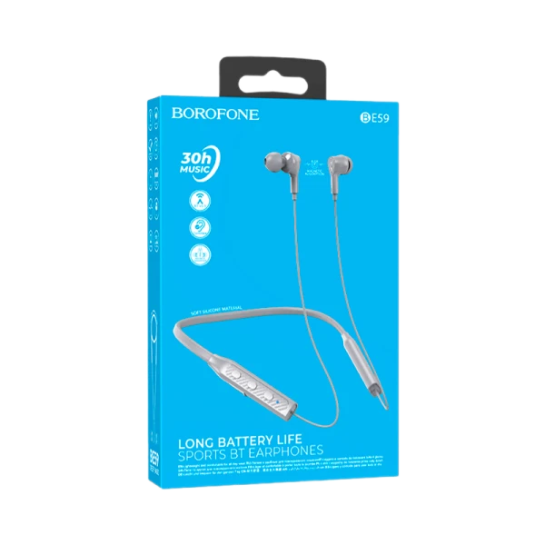 Наушники вставные Borofone BE59 bluetooth 5.3 с микр. с шейным шнурком серый