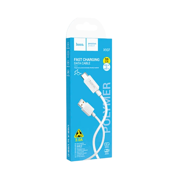 Кабель HOCO X107 USB (m)-Type-C (m) 1.0м 3.0A ПВХ белый;