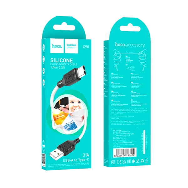 Кабель HOCO X90 USB (m)-Type-C (m) 1.0м 3.0A силикон белый;