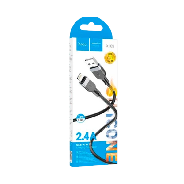 Кабель HOCO X109 USB (m)-Lightning (m) 1.0м 2.4A силикон черный;