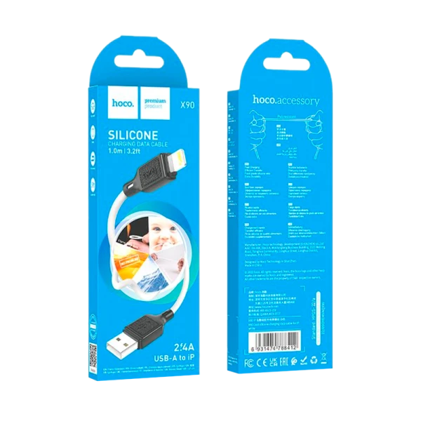 Кабель HOCO X90 USB (m)-Lightning (m) 1.0м 2.4A силикон белый;