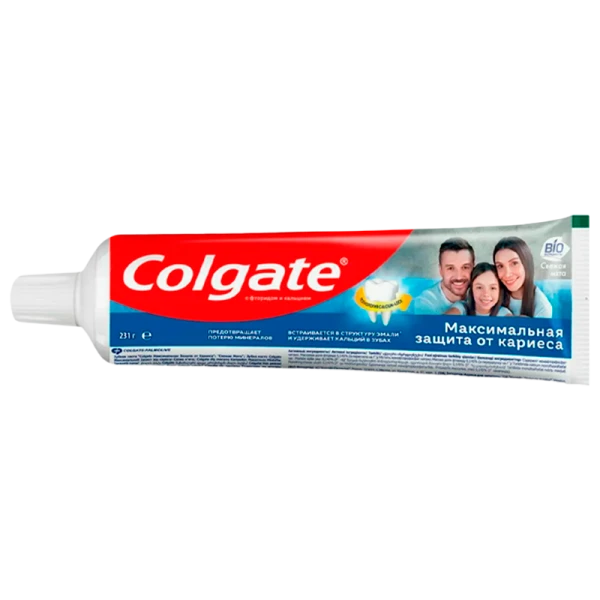 Зубная паста Colgate «Максимальная Защита от кариеса» с кальцием и фторидом поможет вам справиться с проблемой чистки зубов в труднодоступных для местах полости рта. Уникальная формула с технологией Calcium-lock встраивается в структуру эмали и удерживает кальций в зубах, укрепляя ослабленную эмаль и защищая зубы от кариеса со всех сторон. Зубная паста Максимальная Защита от кариеса помогает предотвратить потерю минералов и сохранить зубы крепкими изнутри. Удаляет зубной налет, бережно восстанавливает белизну зубов. Приятный мягкий мятный вкус надолго освежит дыхание!