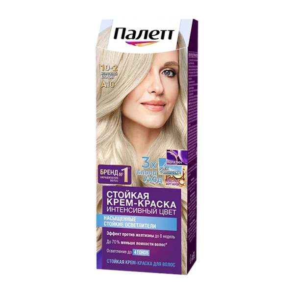 Благодаря тройной системе ухода стойкая крем-краска для волос Палетт обеспечивает бережное окрашивание. С аммиаком.