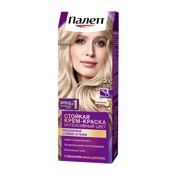 Благодаря тройной системе ухода стойкая крем-краска для волос Палетт обеспечивает бережное окрашивание. С аммиаком.