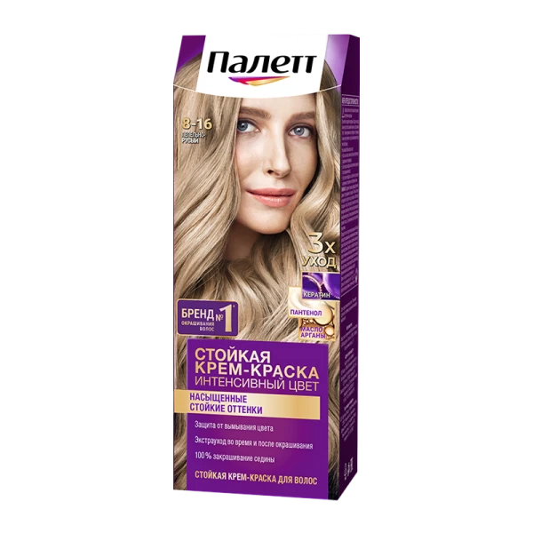 Формула с высокоинтенсивными пигментами проникает глубоко внутрь волоса, защищая цвет от вымывания. Стойкий насыщенный цвет надолго и 100% закрашивание седины. Формула и маска-уход с тройной системой ухода с кератином, пантенолом и nutri-маслом обеспечивают бережную заботу о волосах. Palette укрепляет, разглаживает волокна волос и наполняет их цветом для роскошного стойкого оттенка.