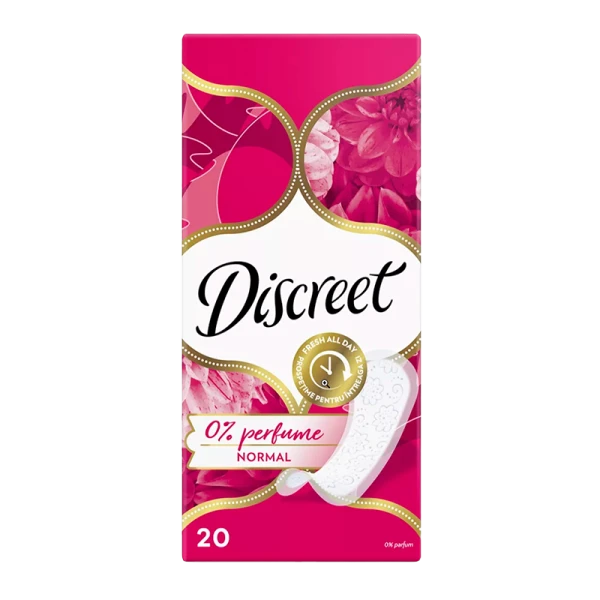 Ежедневные прокладки Discreet Normal без отдушек подарят вам ощущение свежести и красоты на целый день. Защищают белье благодаря полноценному покрытию. Дизайн этих ежедневных прокладок позволяет коже дышать, обеспечивая свежесть и комфорт до 12 часов. Они настолько тонкие, что вы их даже не почувствуете. Вариант 0 % без отдушек. С этими ежедневными прокладками вы будете ощущать свежесть в течение всего дня!
