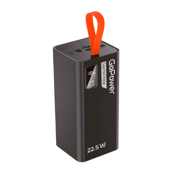 Внешний блок питания GoPower PB03 с ёмкостью 50 000мАч выполнен в огнестойком противоударном корпусе. Поддерживает заряд 4 устройств одновременно, максимальный ток 3А. Поддерживает функцию быстрой зарядки. Имеет LED индикатор для определения уровня заряда.